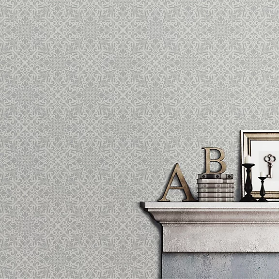 Debona stunning Sofia collection features a intricate floral trail damask set on a metallic background infused with subtle glitter elements that sparkle in light.
